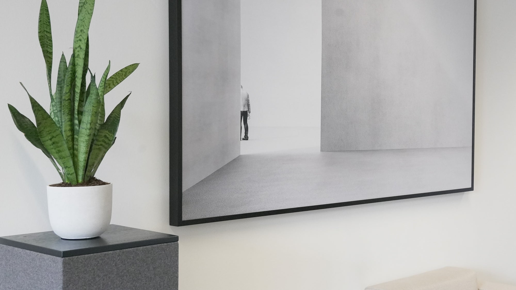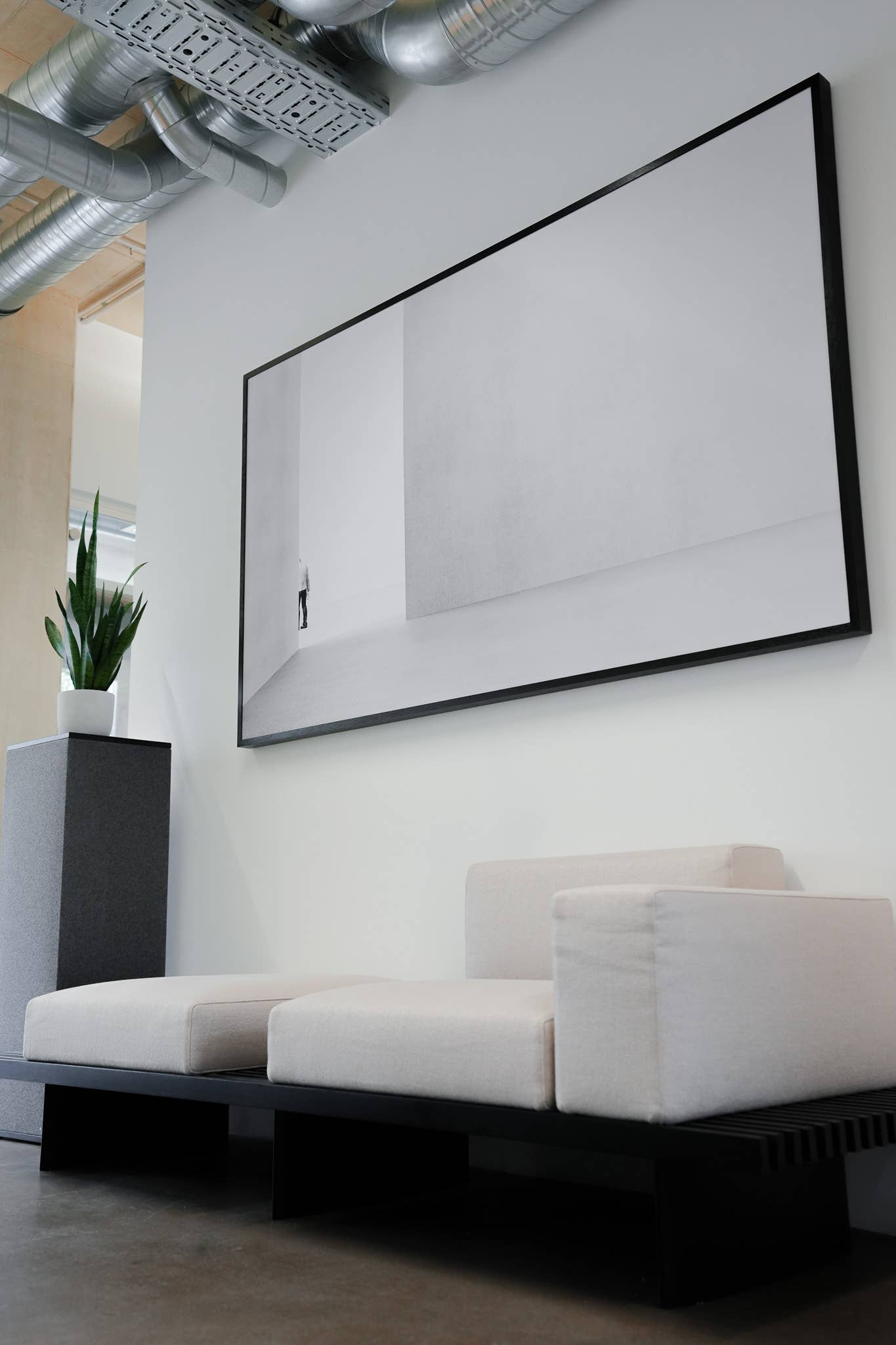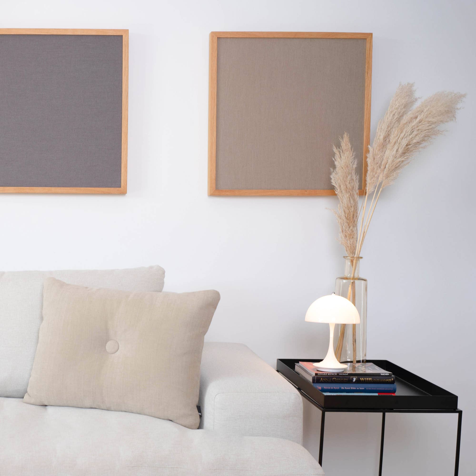Bedruckte Akustikbilder oder einfarbige Akustikpaneele mit hochwertigem Vollholzrahmen oder rahmenlos.