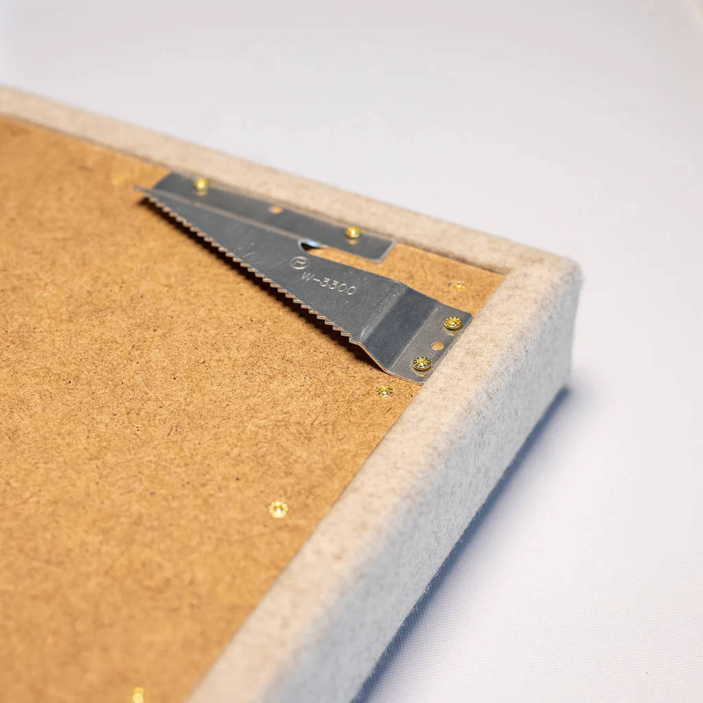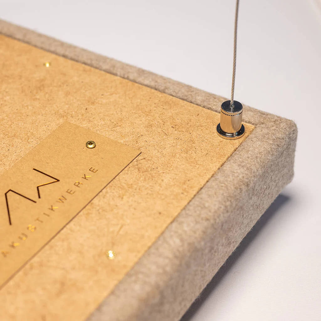 Unsere Wand-Akustikbilder sind bereits mit einer stabilen Metallaufhängung und zwei Filz-Abstandshaltern an der Rückseite ausgestattet.