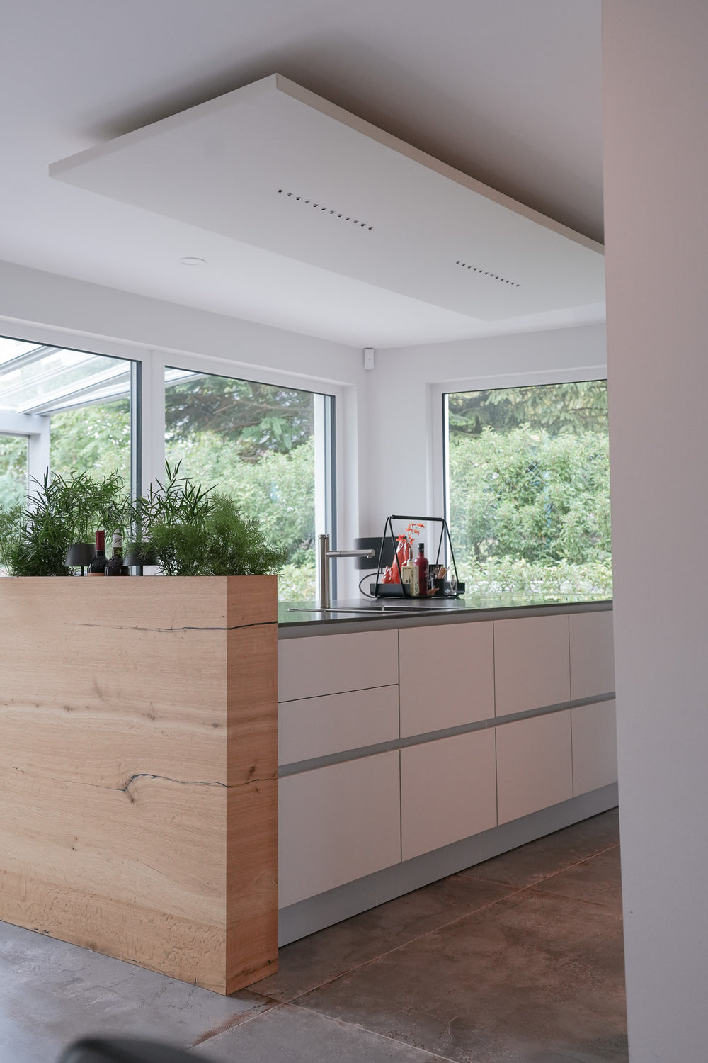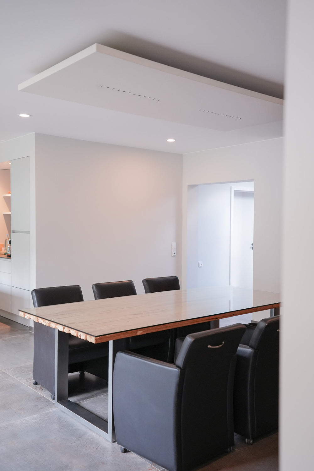 Durch die Gastfreundschaft der Hausbesitzer zeigte sich schnell, dass bei geselligen Momenten der Lautstärkepegel spürbar anstieg und über längere Zeit als belastend empfunden wurde. Ziel war es daher, die Raumakustik gezielt zu optimieren, ohne das harmonische Design zu beeinträchtigen.